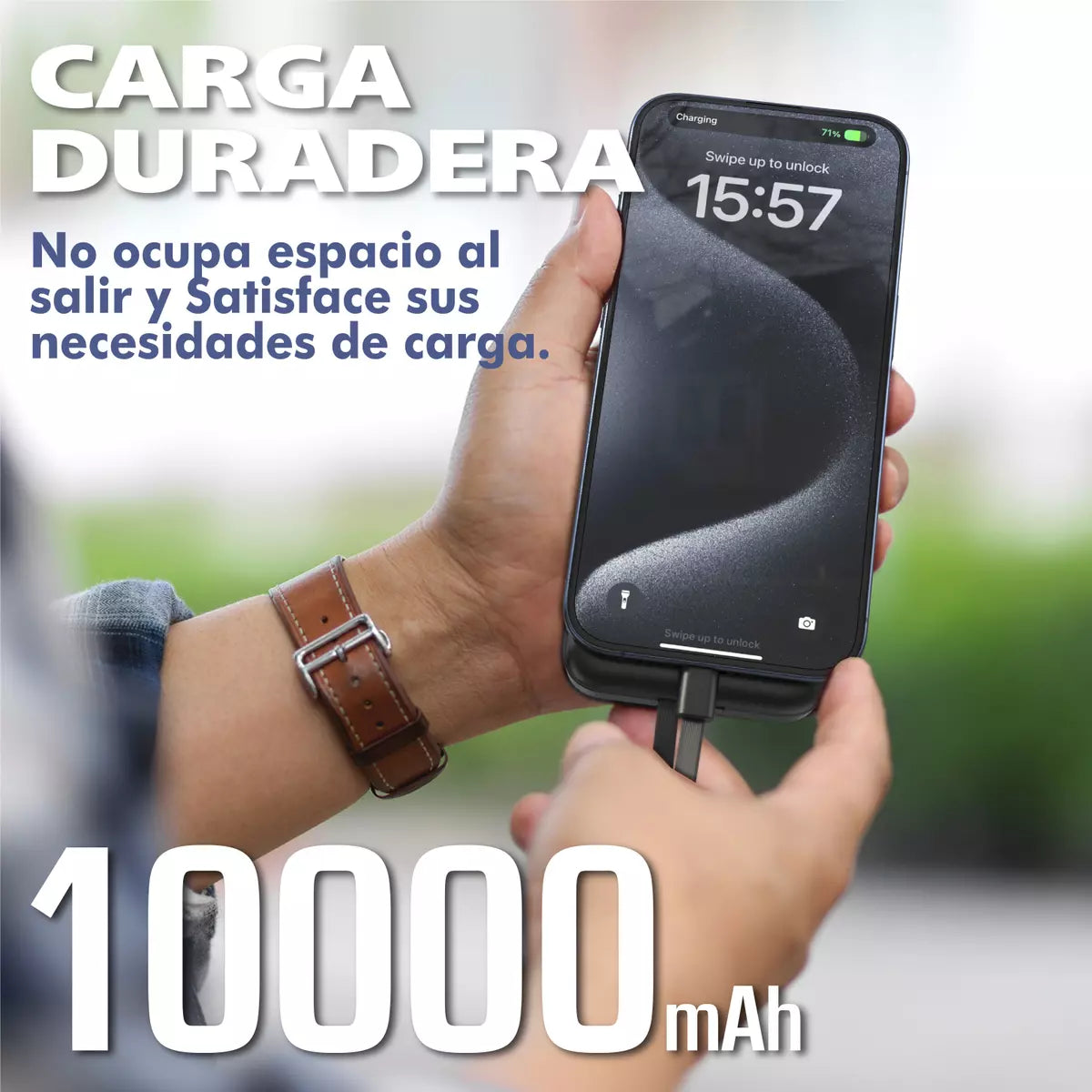Su diseño compacto, con acabado blanco moderno y minimalista, la hace fácil de transportar en bolsos, mochilas o incluso en el bolsillo. Fabricada con materiales resistentes y seguros, ofrece una carga eficiente y protege tus dispositivos contra sobrecargas o cortocircuitos.